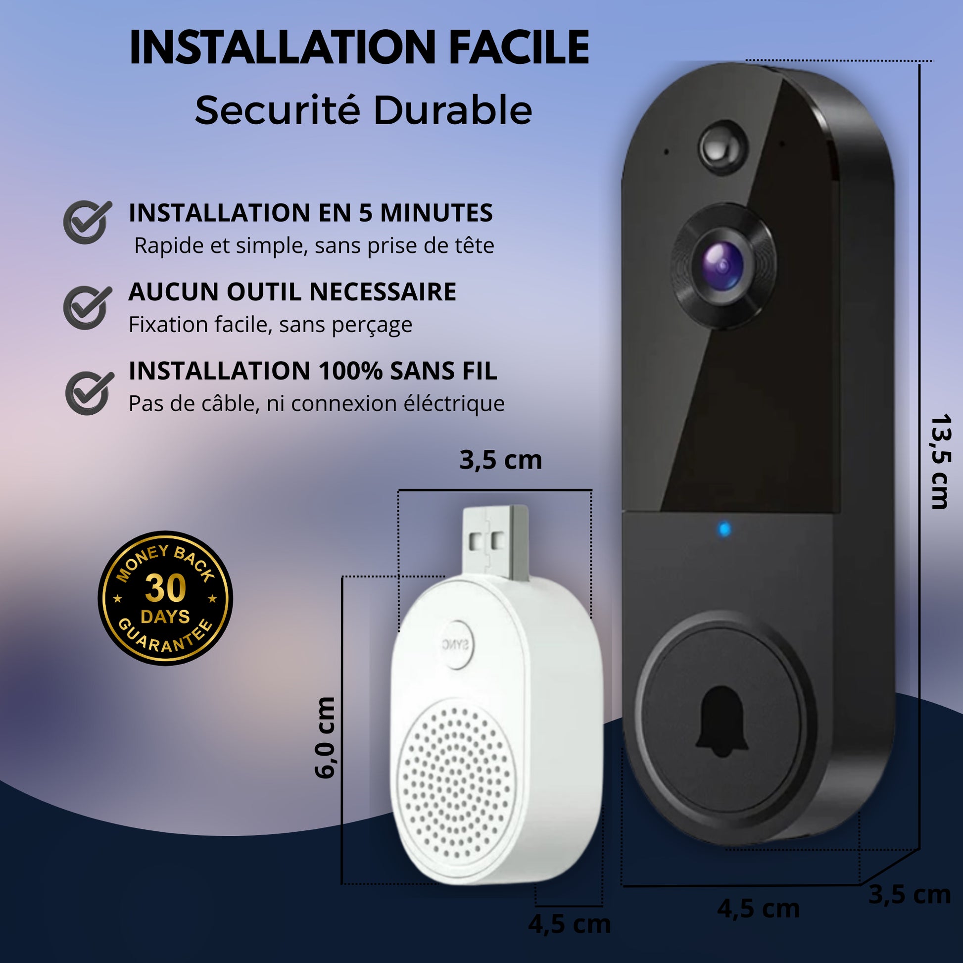 Excellent produit, facile à installer, le carillon est fort et facile à entendre. La caméra est très claire. Je le recommanderais.