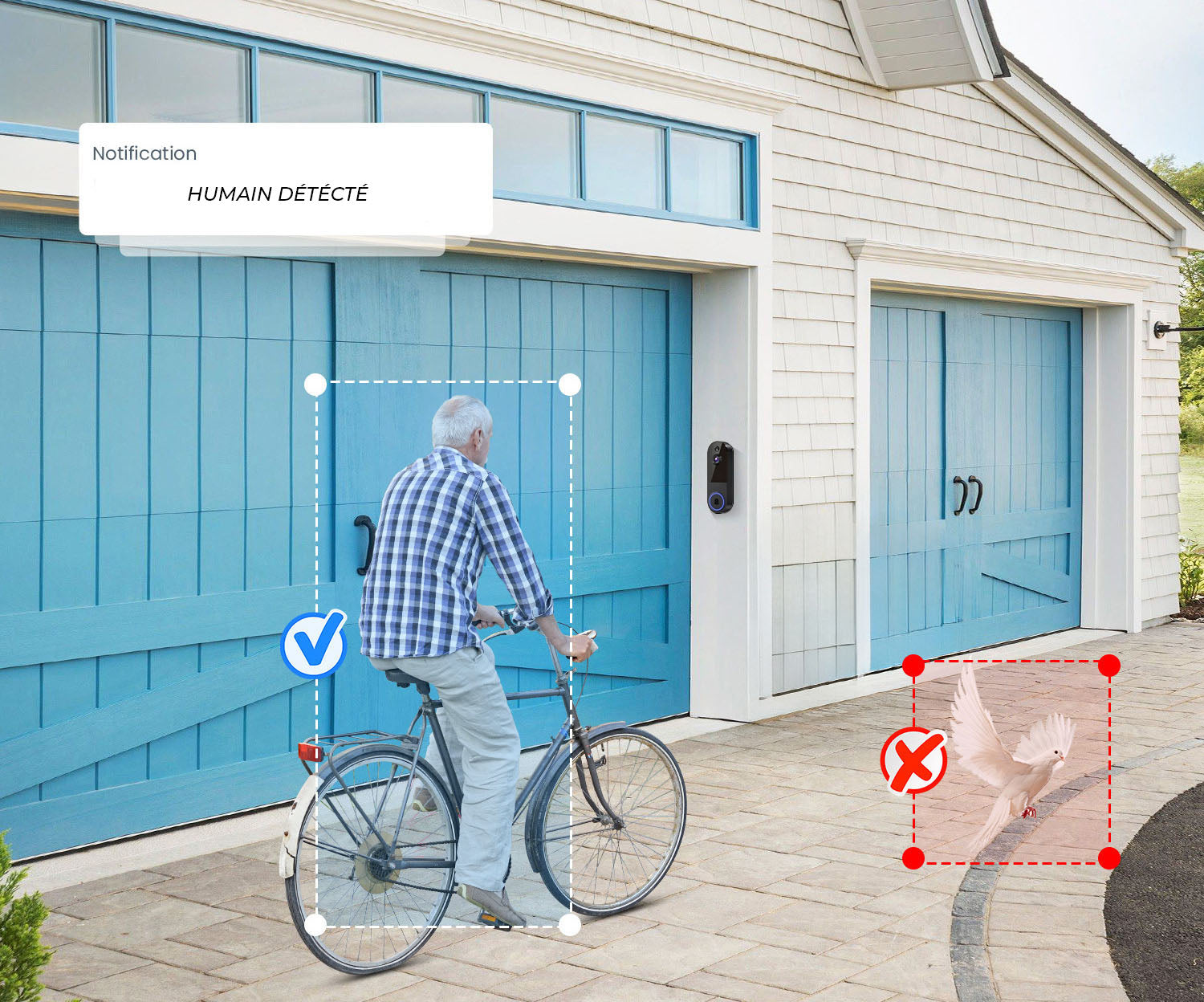 ✅Notre sonnette vous notifie a chaque livraison ou visite inattendu grâce à la détection de mouvement avancé de l'IA.